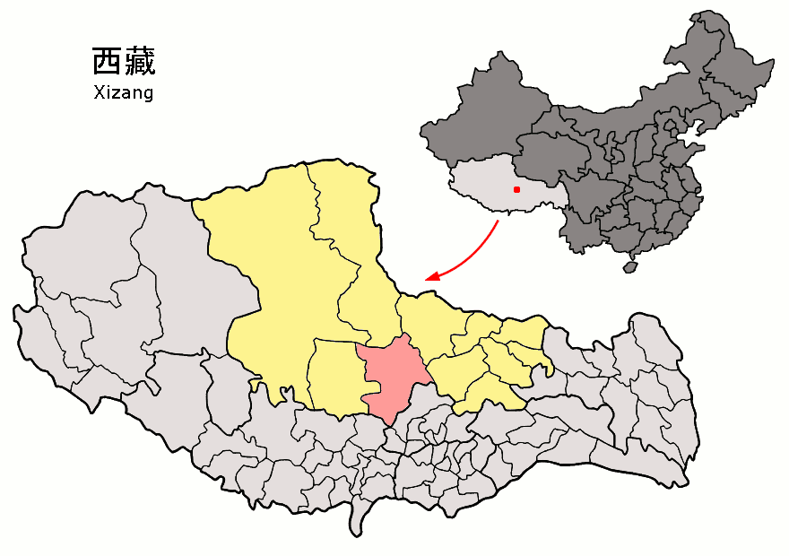 | Description | Location of Baingoin County (pink) and Nagchu Prefecture (yellow) within Tibet (Xizang) autonomous region of China |