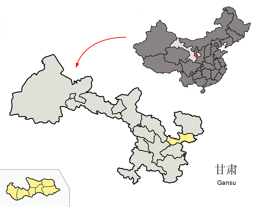Location of Pingliang Prefecture (yellow) within Gansu province of China Map drawn in october 2007 using various sources, mainly : |
