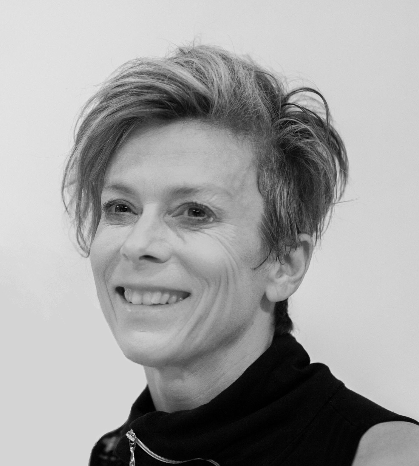 English: The Canadian dancer Louise Lecavalier at a discussion with the audience in the Tanzzentrum NRW Düsseldorf after the premiere of her piece "So Blue". In the background the french dancer Frédéric Tavernini. December 2012.