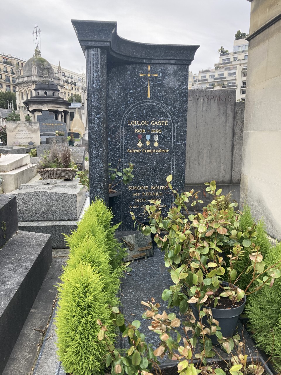 Français : Tombe de Loulou Gasté et de la mère de Line Renaud au cimetière de Passy. |