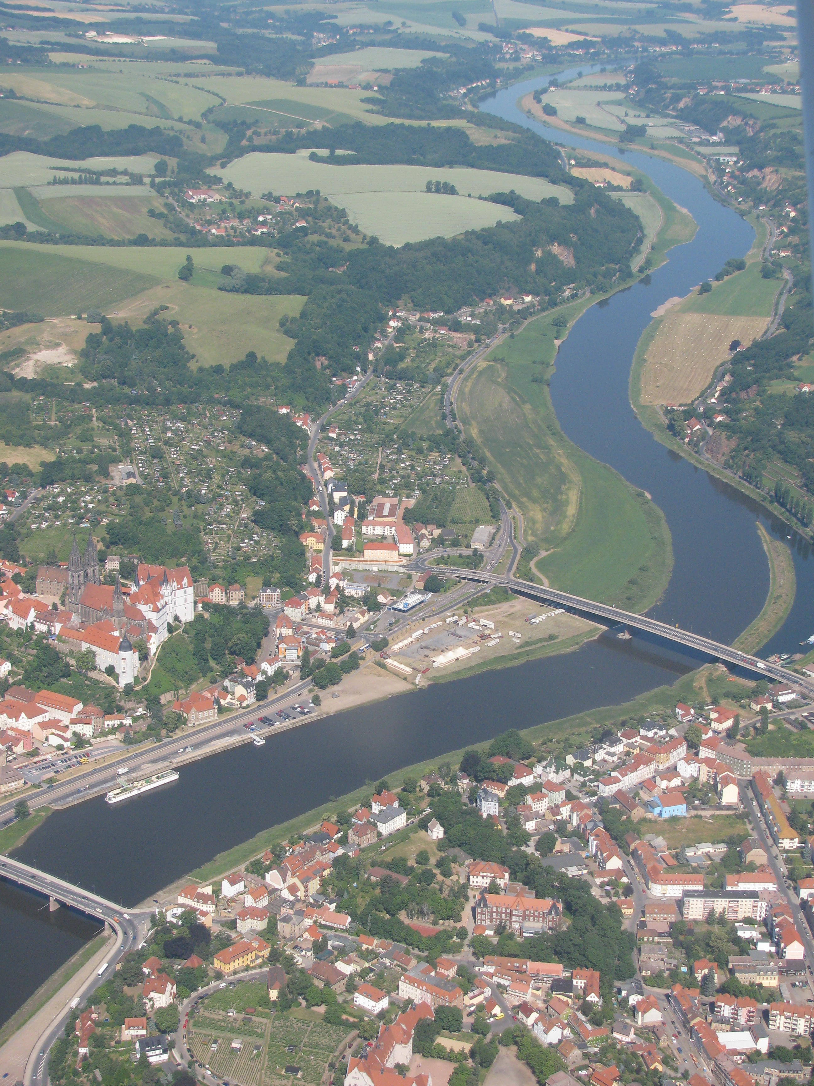 Deutsch: Luftbild Meißen-Vorbrücke und Fischergasse |