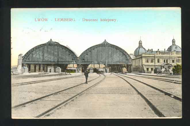 English: en:Lwów train station on an old postcard Copyright expired Reproduction taken from Allegro, the owner agreed to release it to PD |