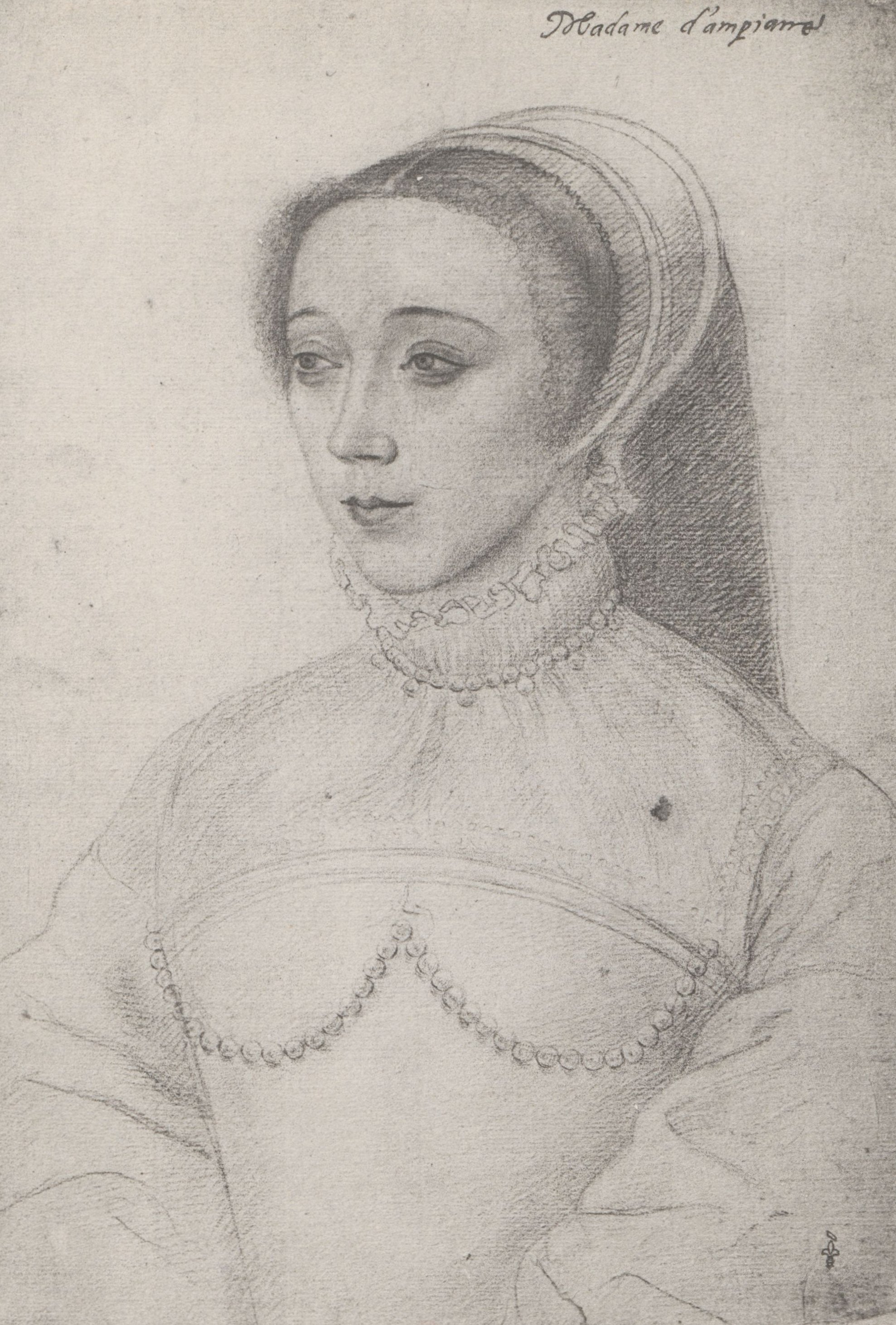Français : Portrait de Jeanne de Vivonne tiré de l'ouvrage Crayons français du XVIe siècle : catalogue, conservé par la Bibliothèque nationale de France, mis à disposition sur Gallica