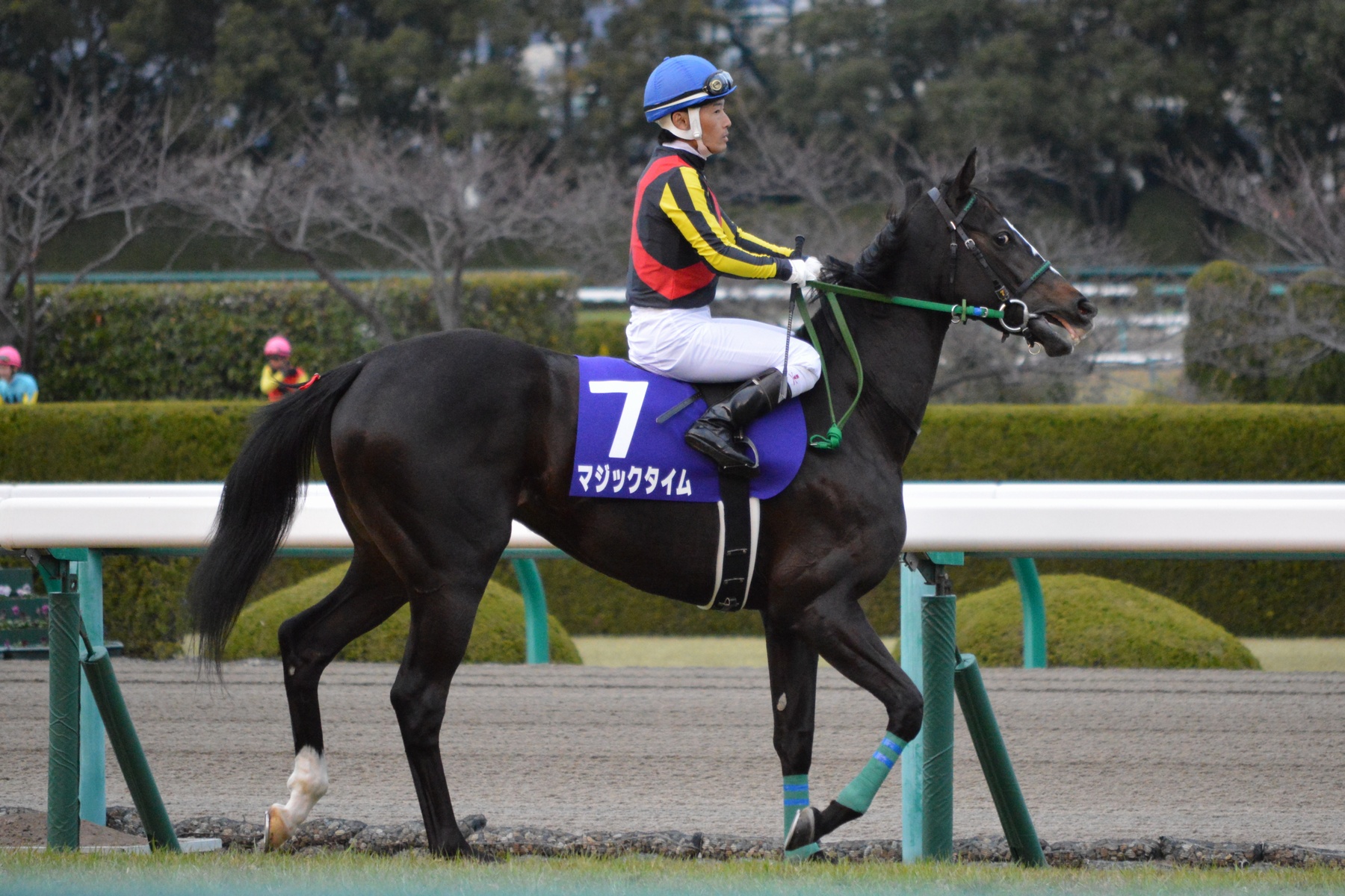 (Japanese) English: Japanese race horse Magic Time at Hanshin racecourse.