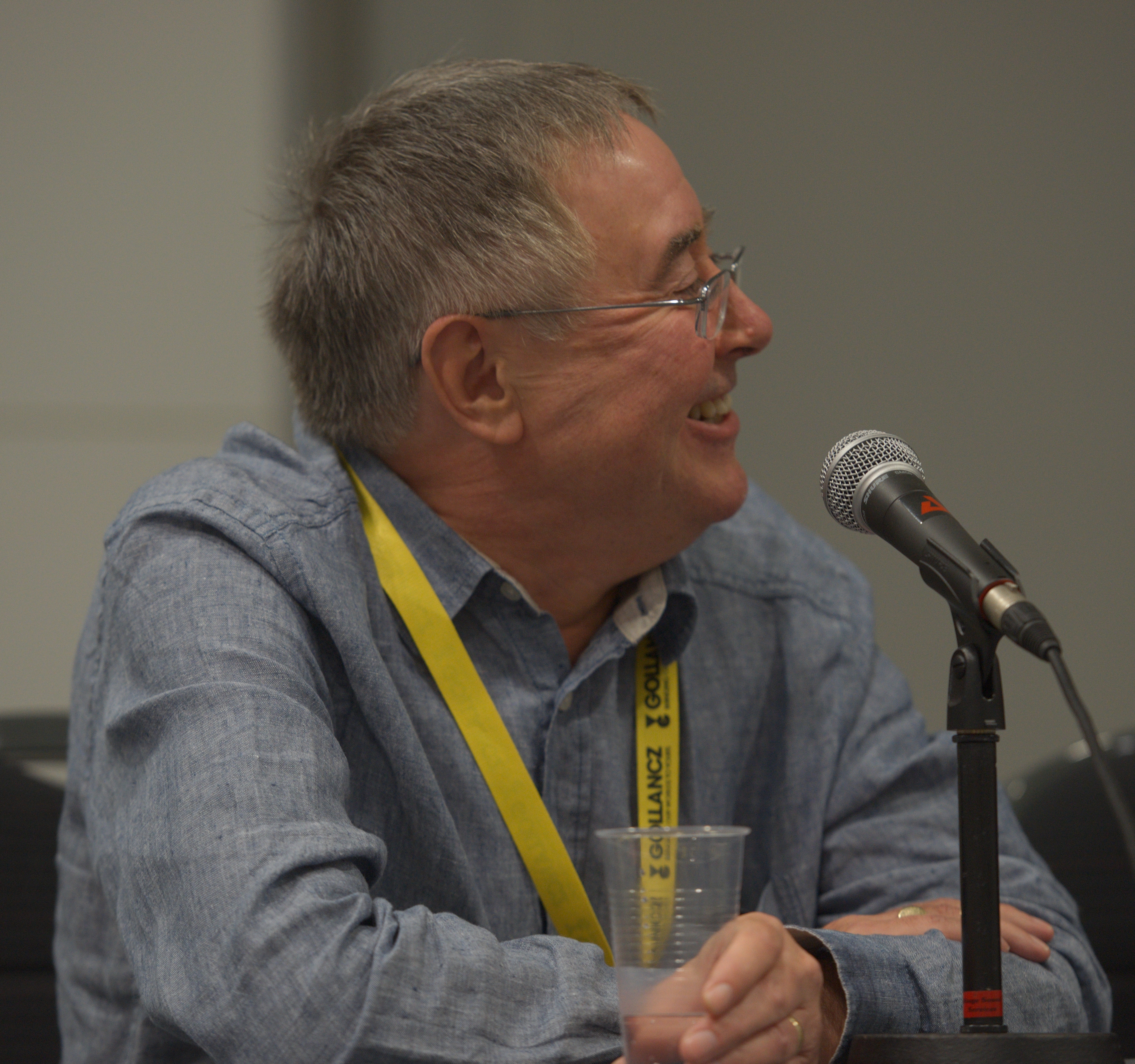 English: Editor and critic Malcolm Edwards in a panel discussion about The Encyclopedia of Science Fiction at Loncon, Worldcon 2014. |