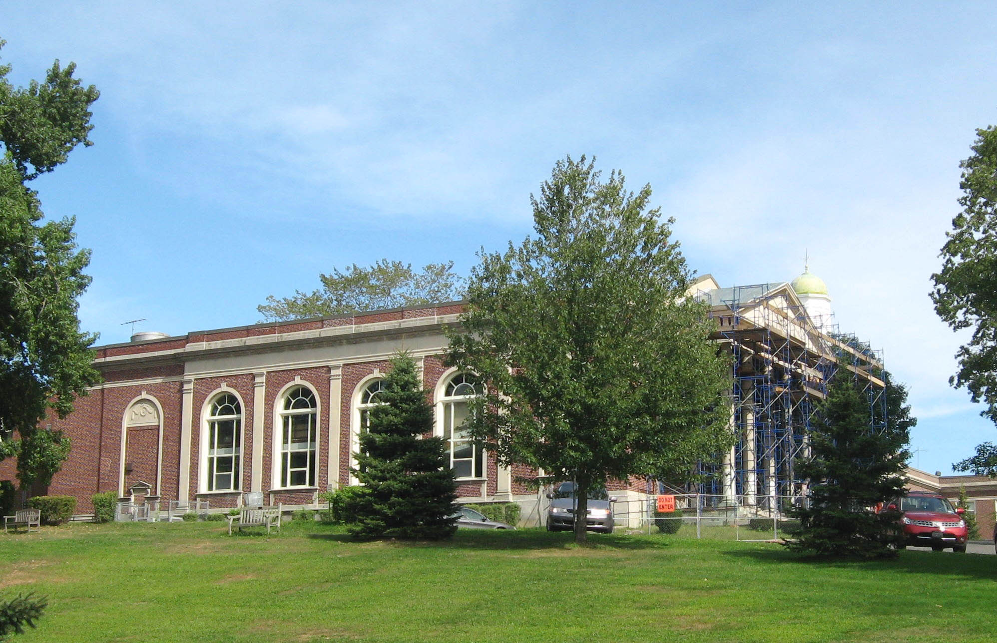 English: en:Mamaroneck High School on a sunny early afternoon |