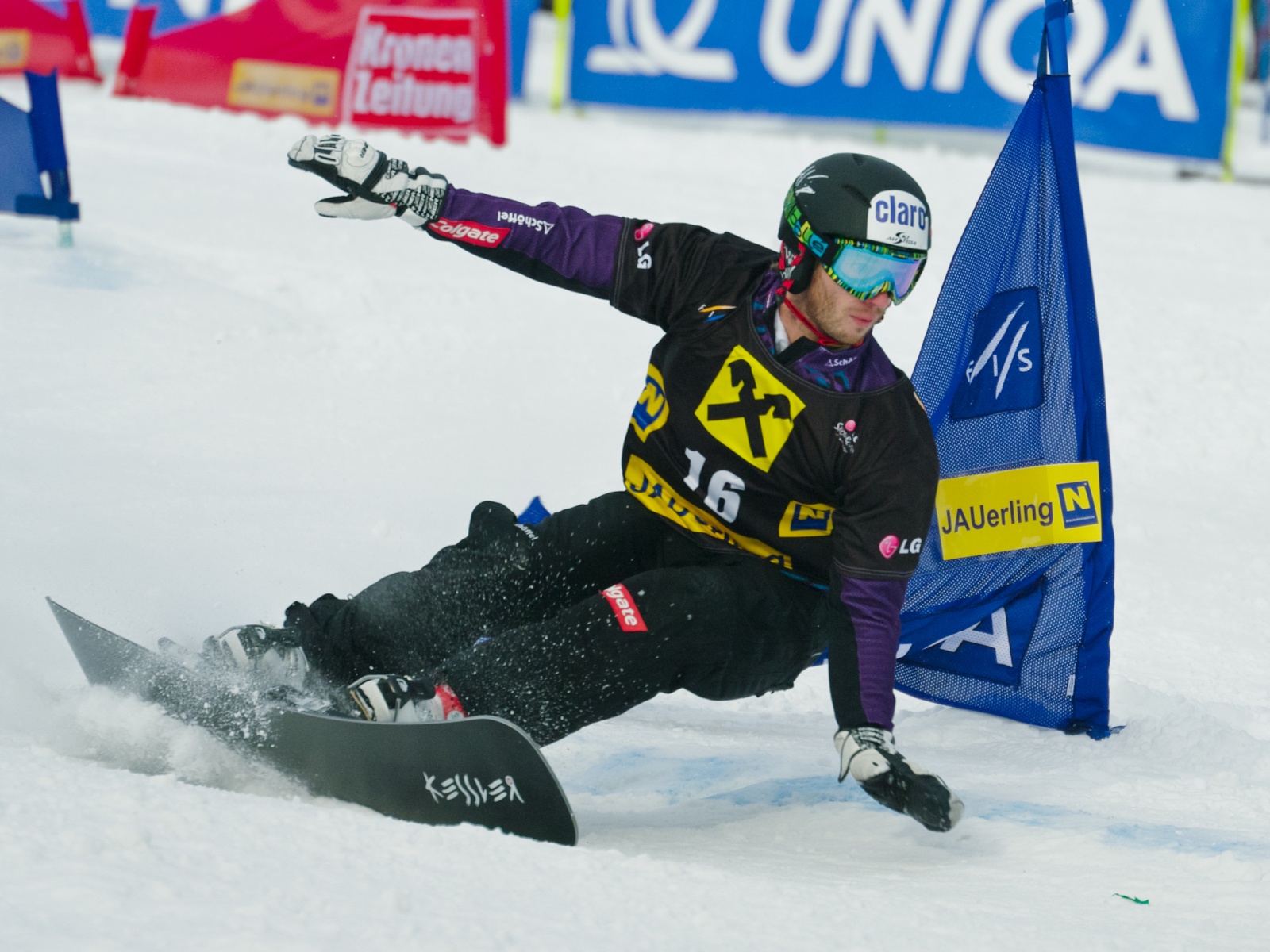 Deutsch: Der österreichische Snowboarder Manuel Veith in der Qualifikation des Weltcup Parallelslaloms am Jauerling in Österreich am 13. Januar 2012. English: Austrian snowboarder Manuel Veith in the qualification round of the World Cup Parallel Slalom at the Jauerling in Austria on 13 January 2012. |