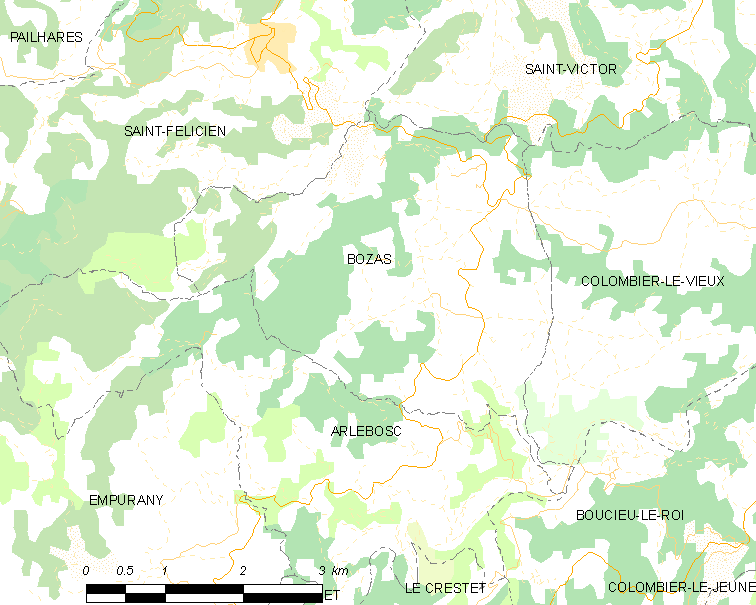 Français : Carte des communes françaises: Bozas