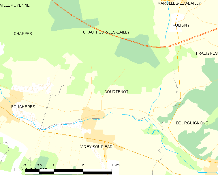 Français : Carte des communes françaises: Courtenot