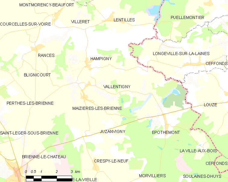 Français : Carte des communes françaises: Vallentigny