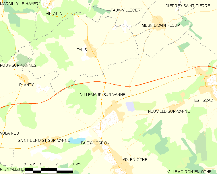 Français : Carte des communes françaises: Villemaur-sur-Vanne