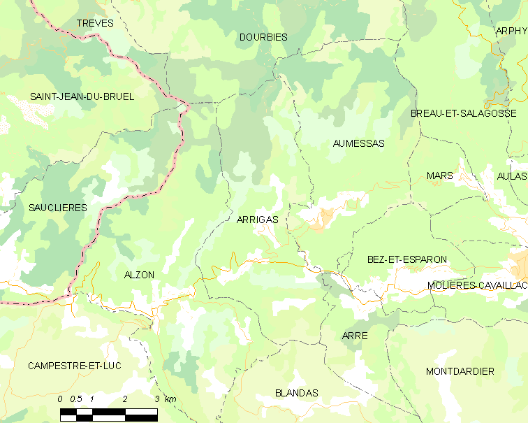 Français : Carte de la commune française de code INSEE 30017 - Arrigas
