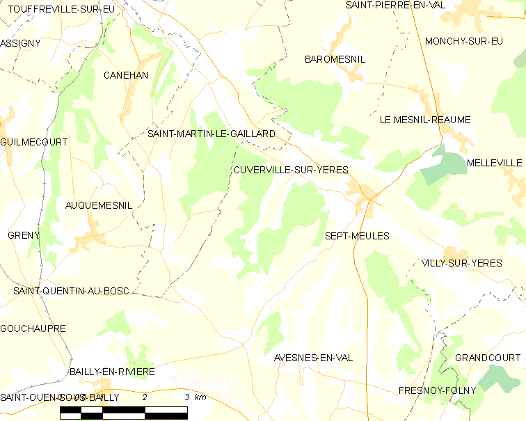Français : Carte des communes françaises Cuverville-sur-Yères