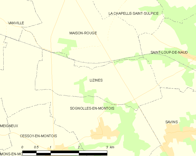 English: Map of French municipality Lizines