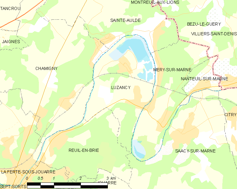 Français : Carte des communes françaises Luzancy
