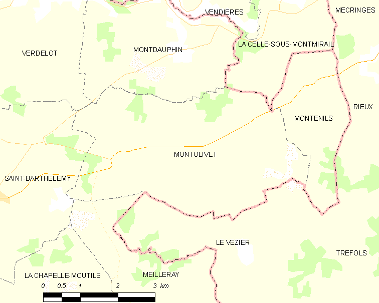 Français : Carte des communes françaises Montolivet