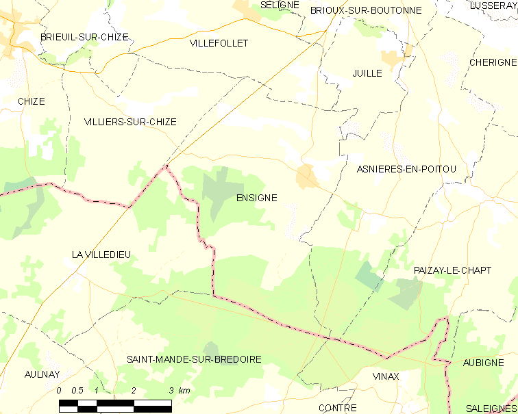 Français : Carte des communes françaises Ensigné