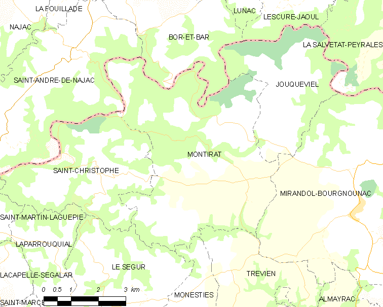 English: Map of French municipality Montirat