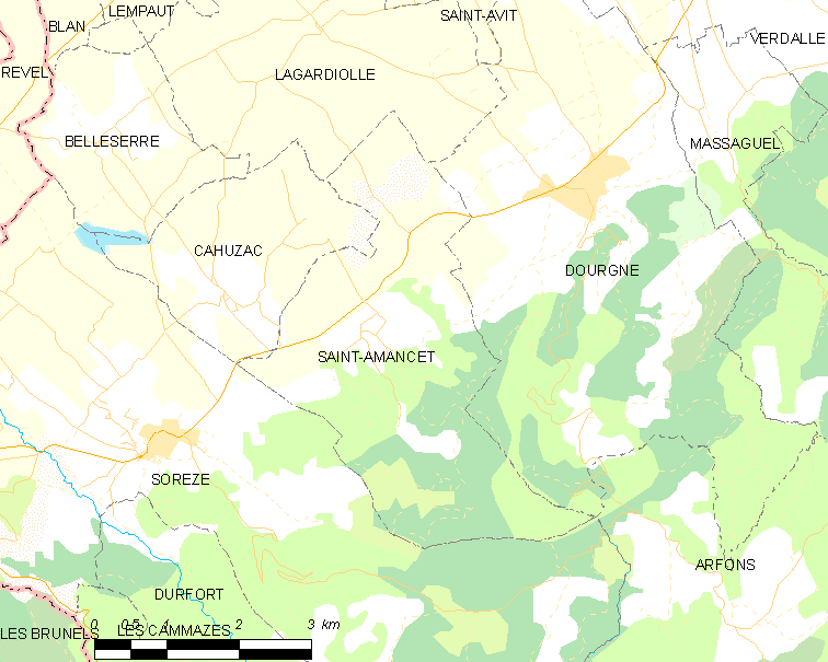 English: Map of French municipality Saint-Amancet