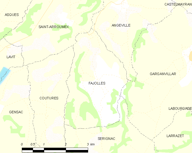 English: Map of French municipality Fajolles