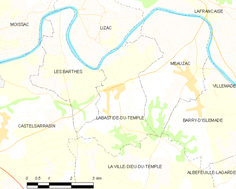 English: Map of French municipality Labastide-du-Temple