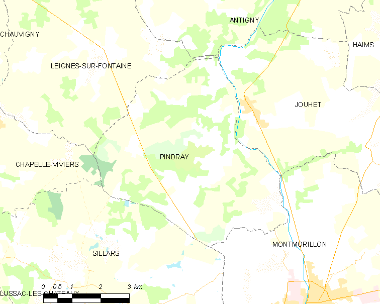 English: Map of French municipality Pindray