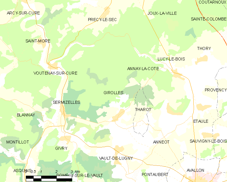 English: Map of French municipality Girolles