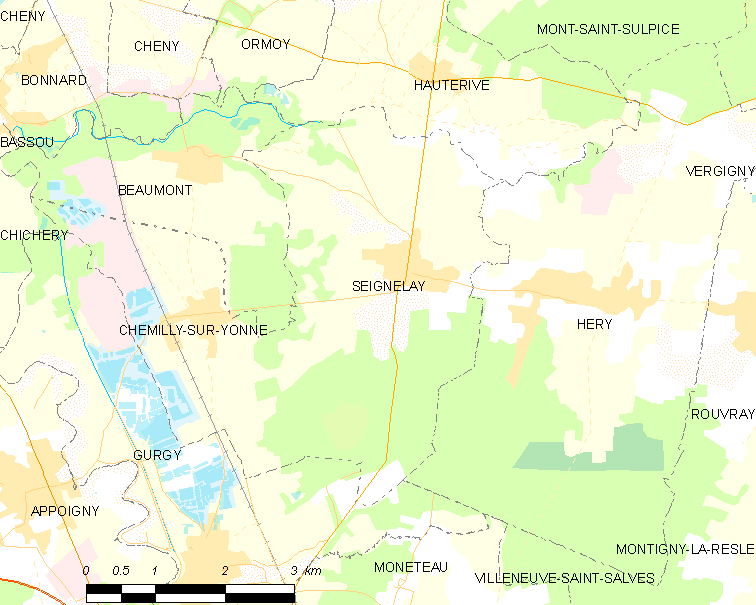 English: Map of French municipality Seignelay