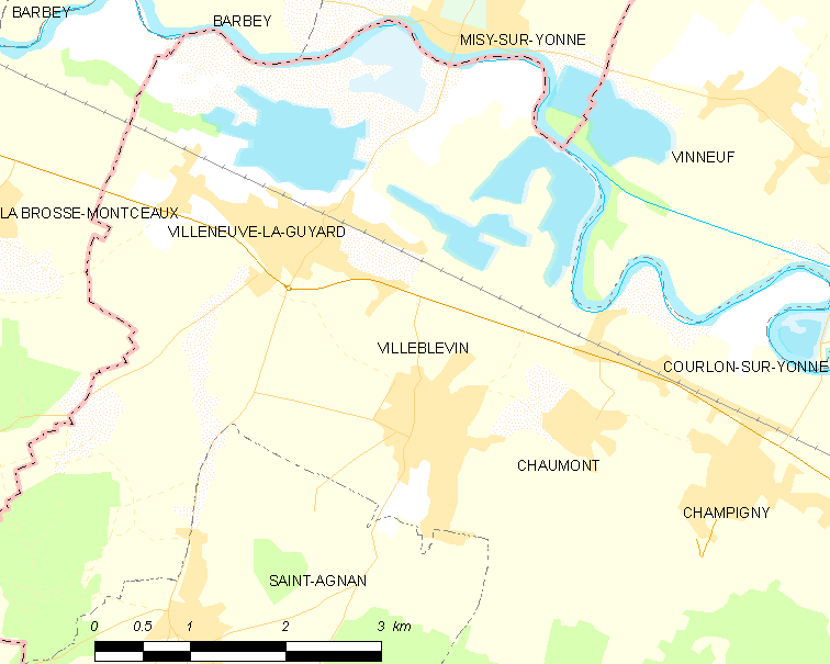 English: Map of French municipality Villeblevin