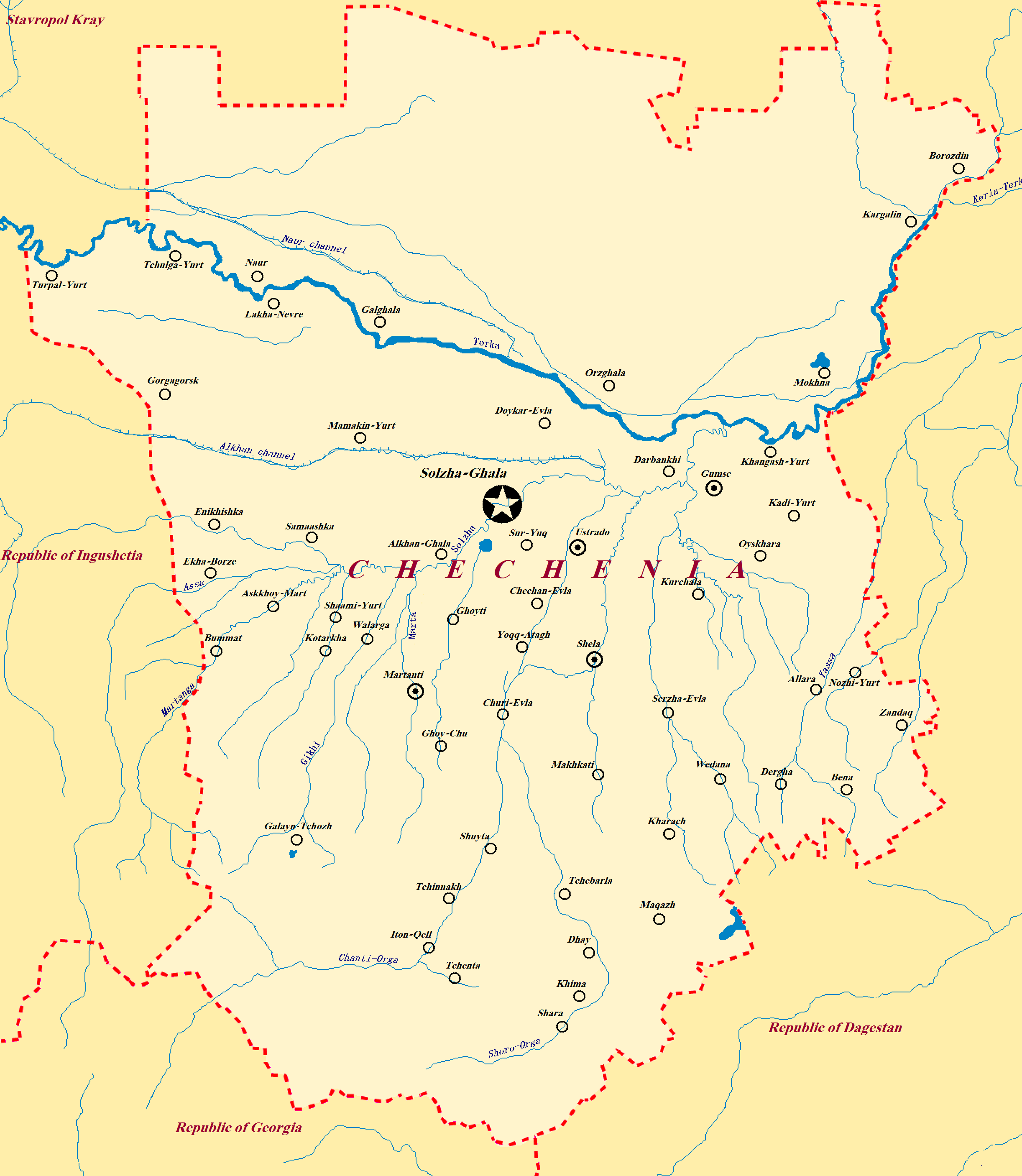 ملف:Map of Chechen Republic (Chechnya).png