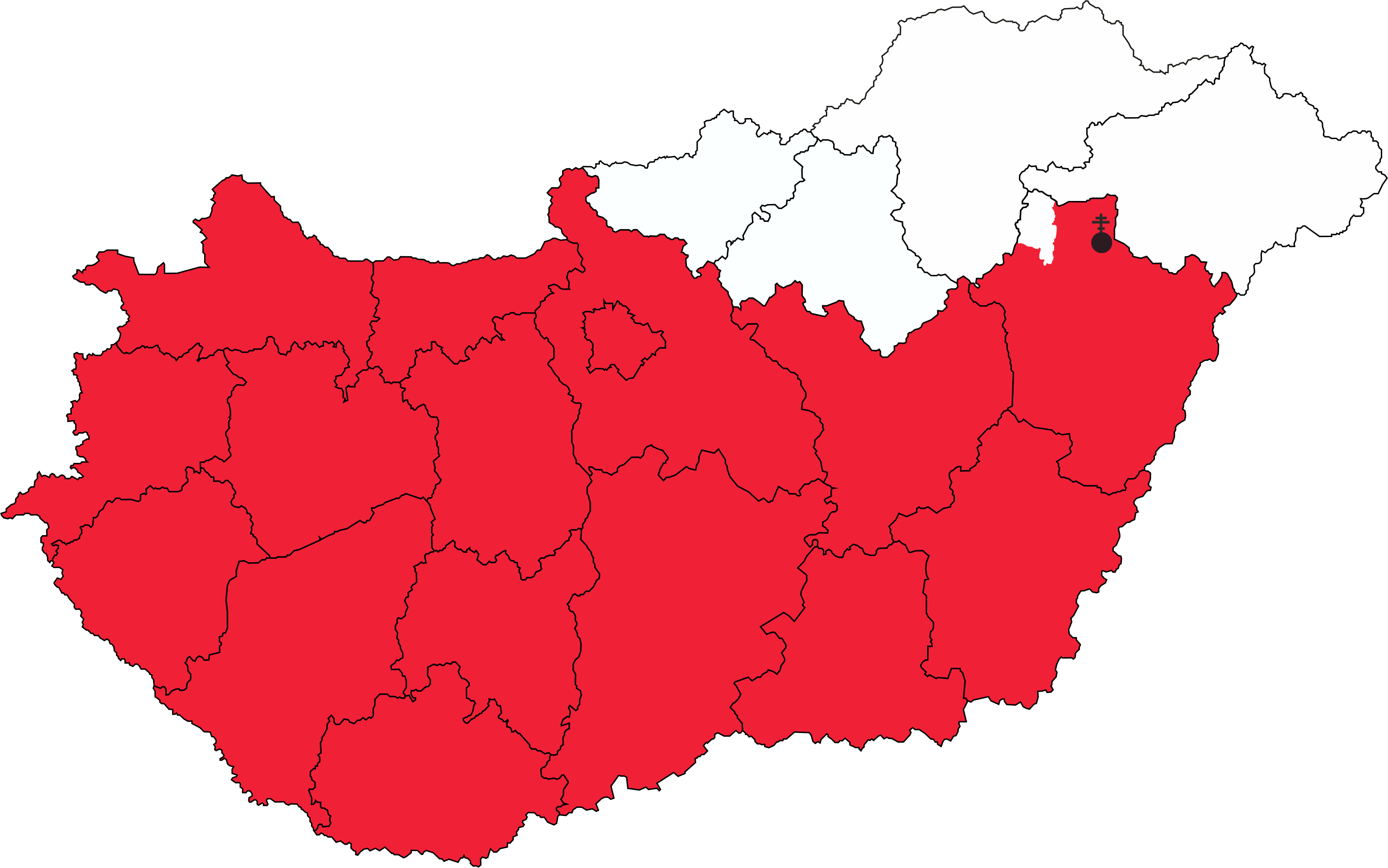 English: The map of the Greek Catholic Diocese of Hajdúdorog, Hungary. Originally the territory of the diocese didn't cover the Western parts of the country, but the pope extended the bishop of Hajdúdorog's jurisdiction over the whole country in 1968 - except the area of the Apostolic Exarchate of Miskolc. (مجرية) |