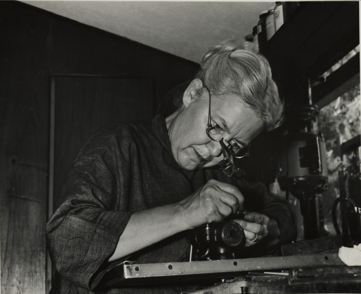 English: Margaret De Patta at her workbench c. 1960; Margaret De Patta papers, circa 1930-2012. Archives of American Art, Smithsonian Institution. Record numberː (DSI-AAA)6427 |