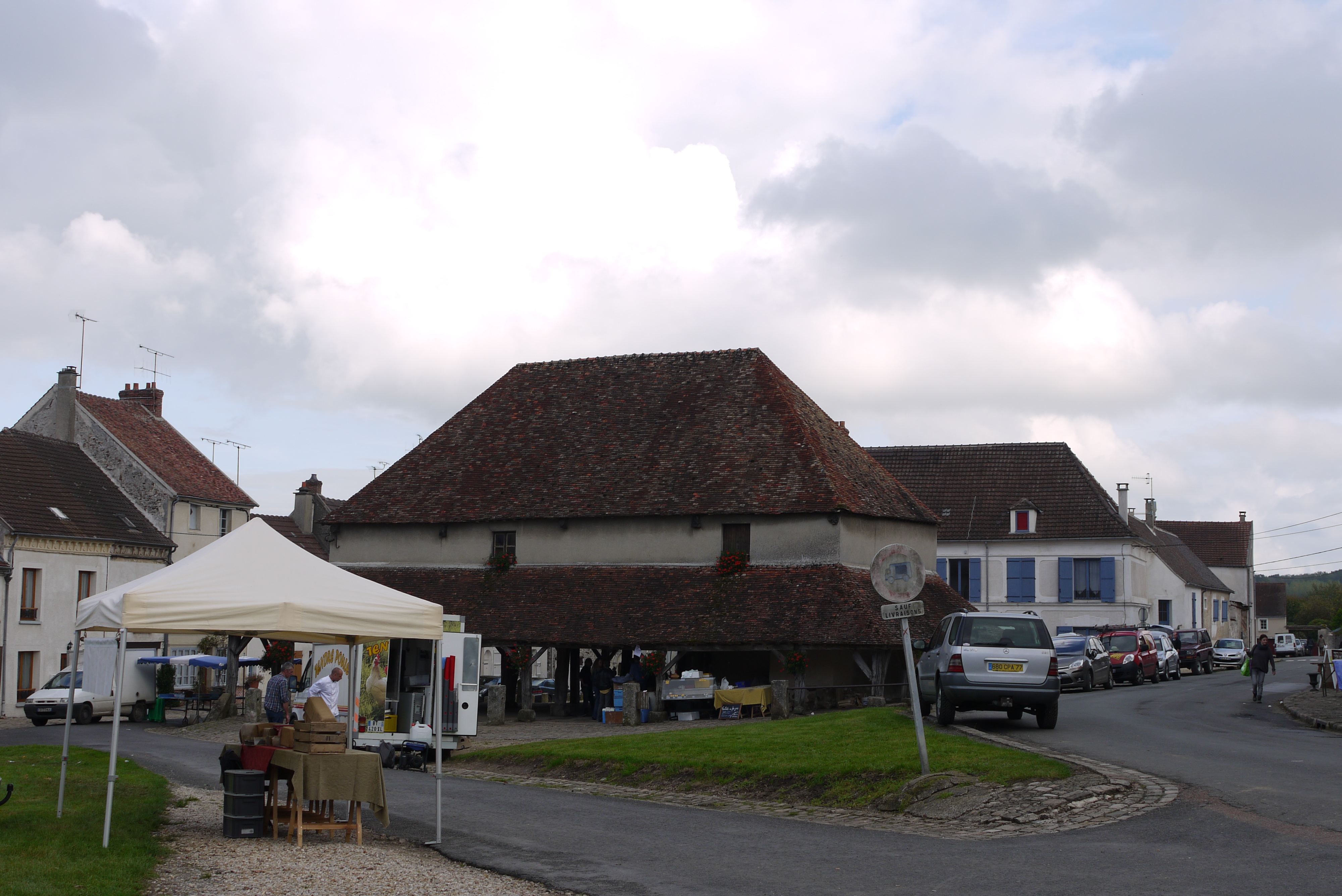 Français : La halle de Marigny-en-Orxois, un dimanche après le marché. |