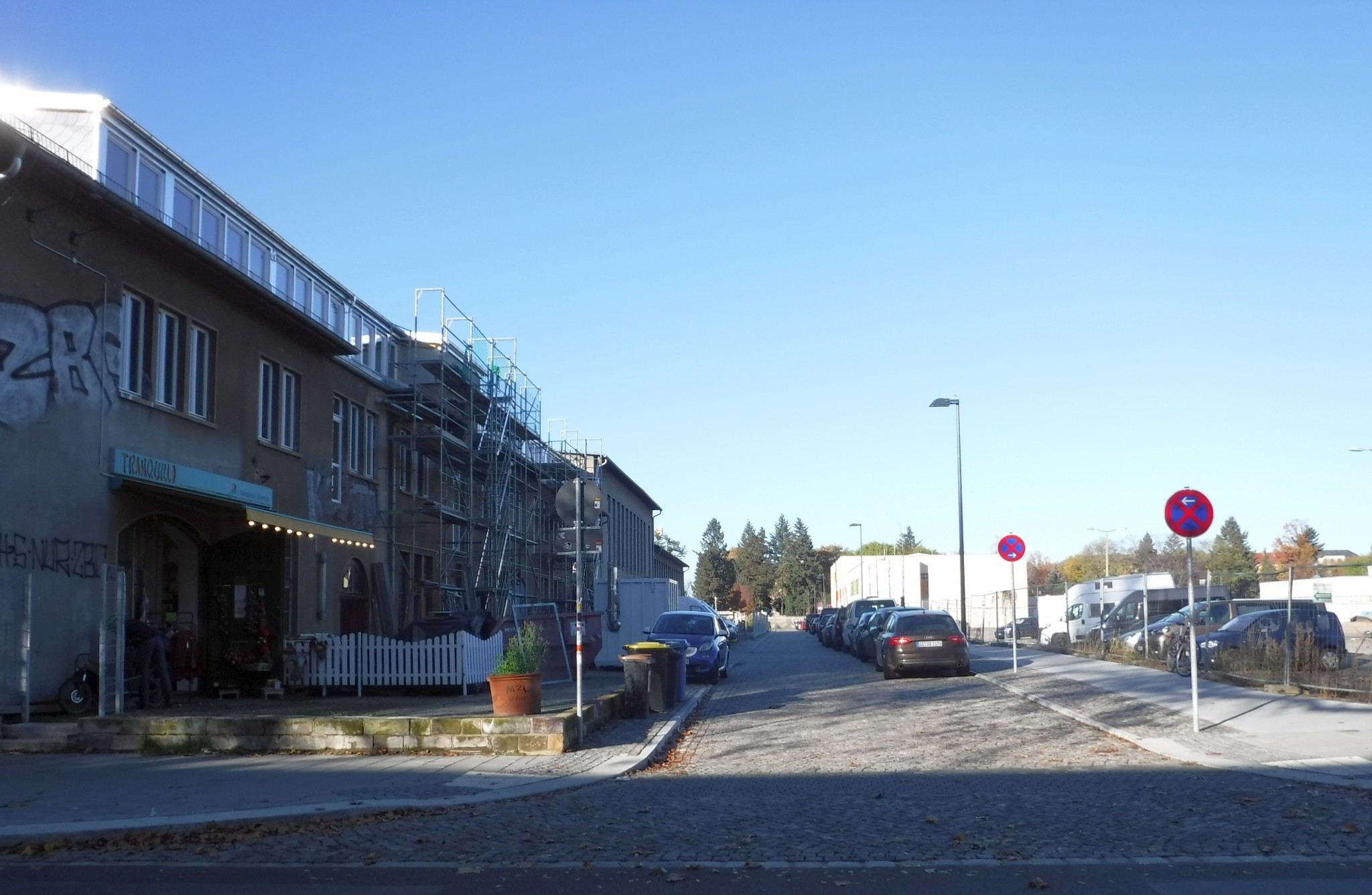 Deutsch: Die Marta-Fraenkel-Straße in Dresden-Leipziger Vorstadt. Blick von der Lößnitzstraße. Links die Lößnitzstraße 14 |