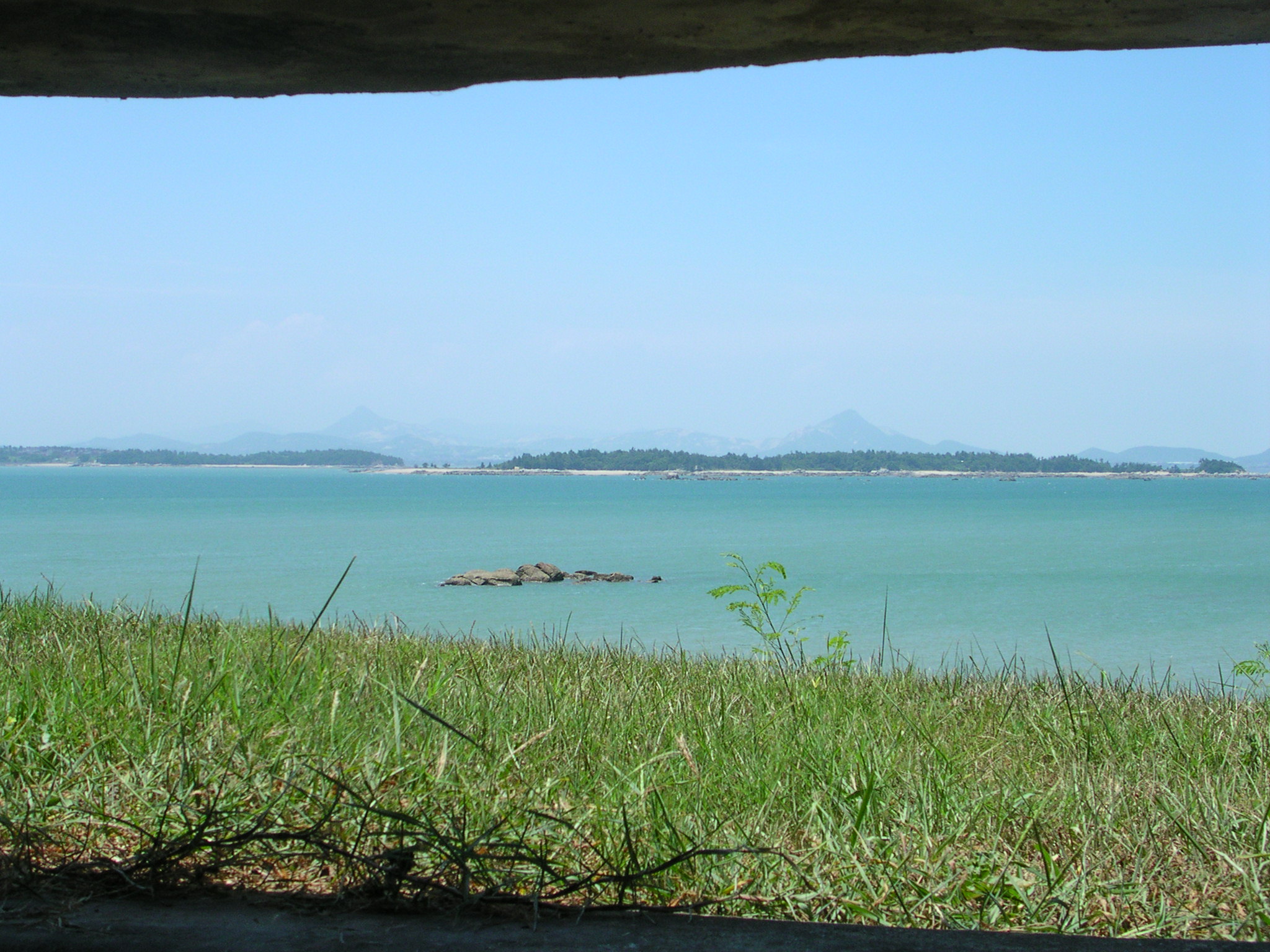 The view from Mashan Observation Post, Kinmen, Republic of China (Taiwan) towards Jiaoyu (角屿/角嶼), Dadeng Subdistrict off the coast of mainland China