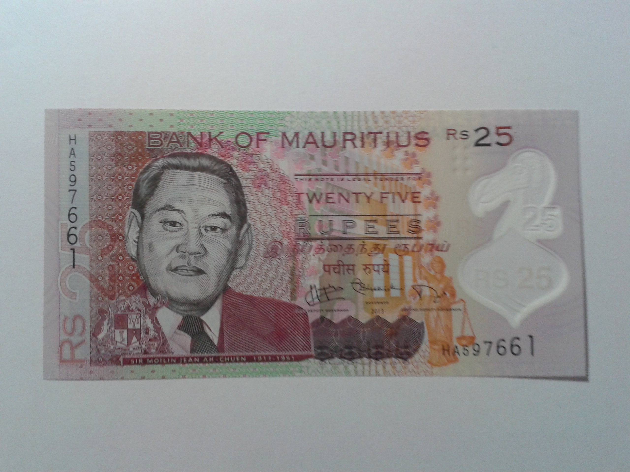 English: A banknote of 25 rupees of Mauritius |