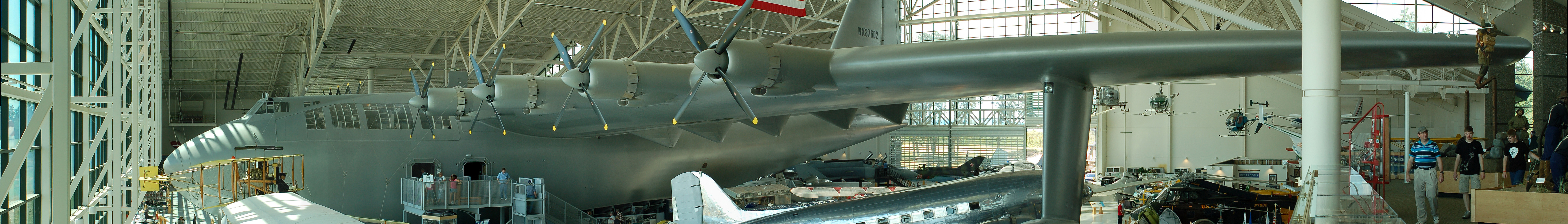 English: 90° panorama of the Hughes H-4 Hercules as currently seen in the Evergreen Aviation & Space Museum. Photo by Gregg M. Erickson |