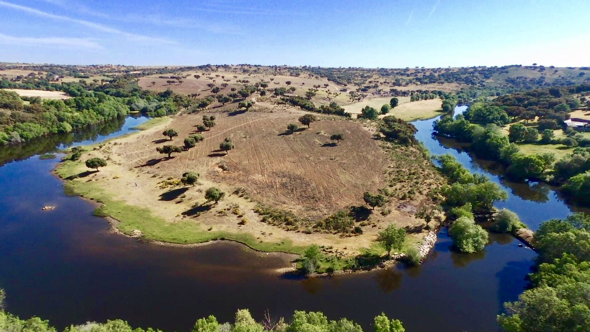 Español: Vista del meandro que el río Yeltes forma en el paraje de la Pernalona entre Villavieja de Yeltes y Pedro Álvaro (Villares de Yeltes) en la provincia de Salamanca (España). |