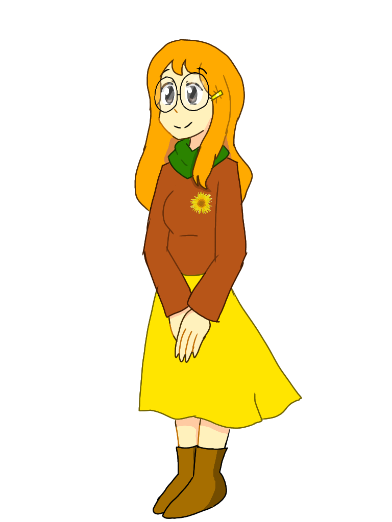 English: MediaWiki-tan is a teenager girl around 14-15 years old with orange hair and round glasses |