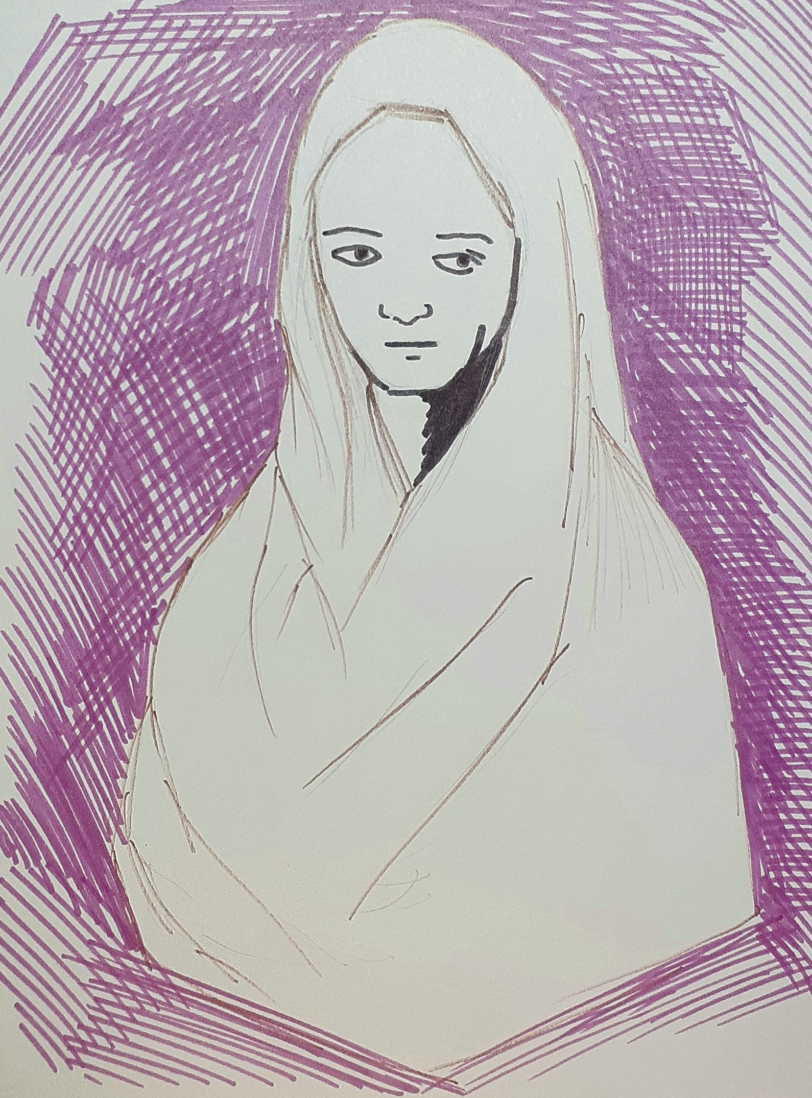 Español: Melchora Cuenca, ilustrada en una hoja blanca de 120 gramos, de 190x240 mm, tiene trazos de fibra indeleble. |