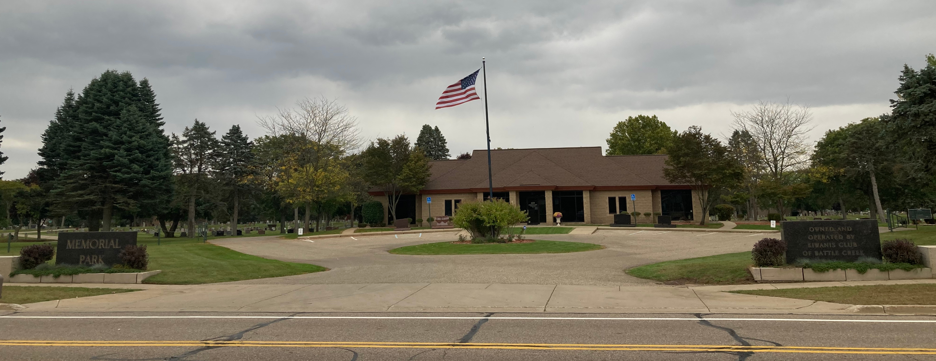 ملف:Memorial Park Cemetery, Battle Creek, MI entrance.jpg