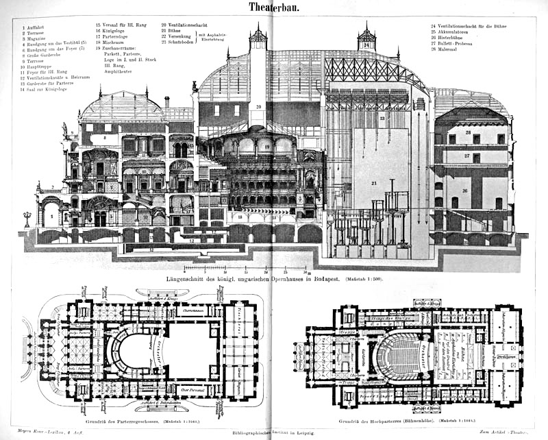 Deutsch: Tafel „Theaterbau“ zum Artikel „Theater“, Original-Bildunterschriften:
