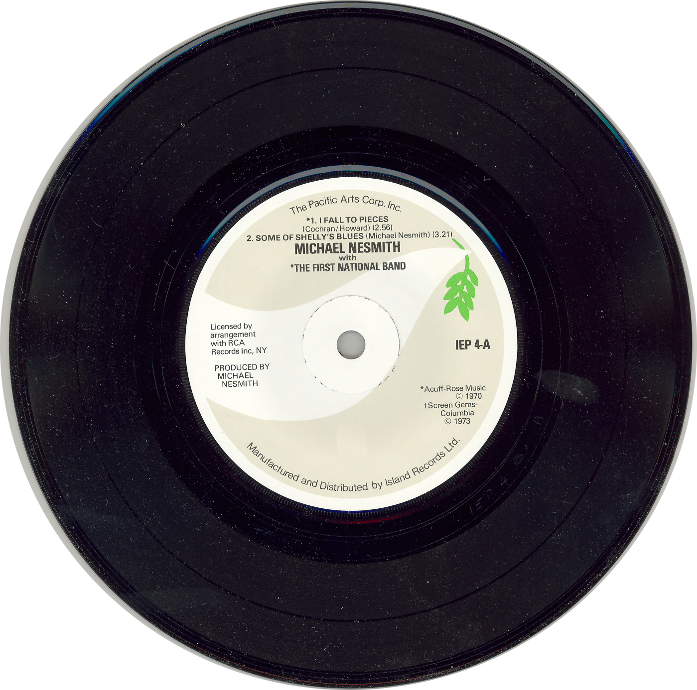 (Label of an EP by Michael Nesmith (the Island record company logo has been removed).)