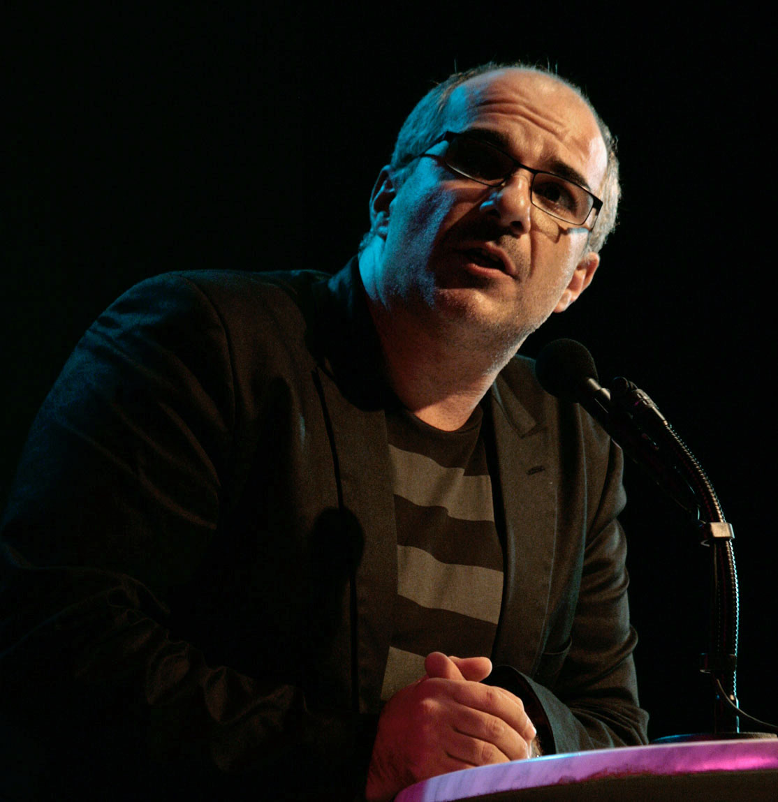 English: Actor, comedian and writer Michael Niavarani reading from 'Vater Morgana' (literary evening "Rund um die Burg" 2009 near the Burgtheater in Vienna). |
