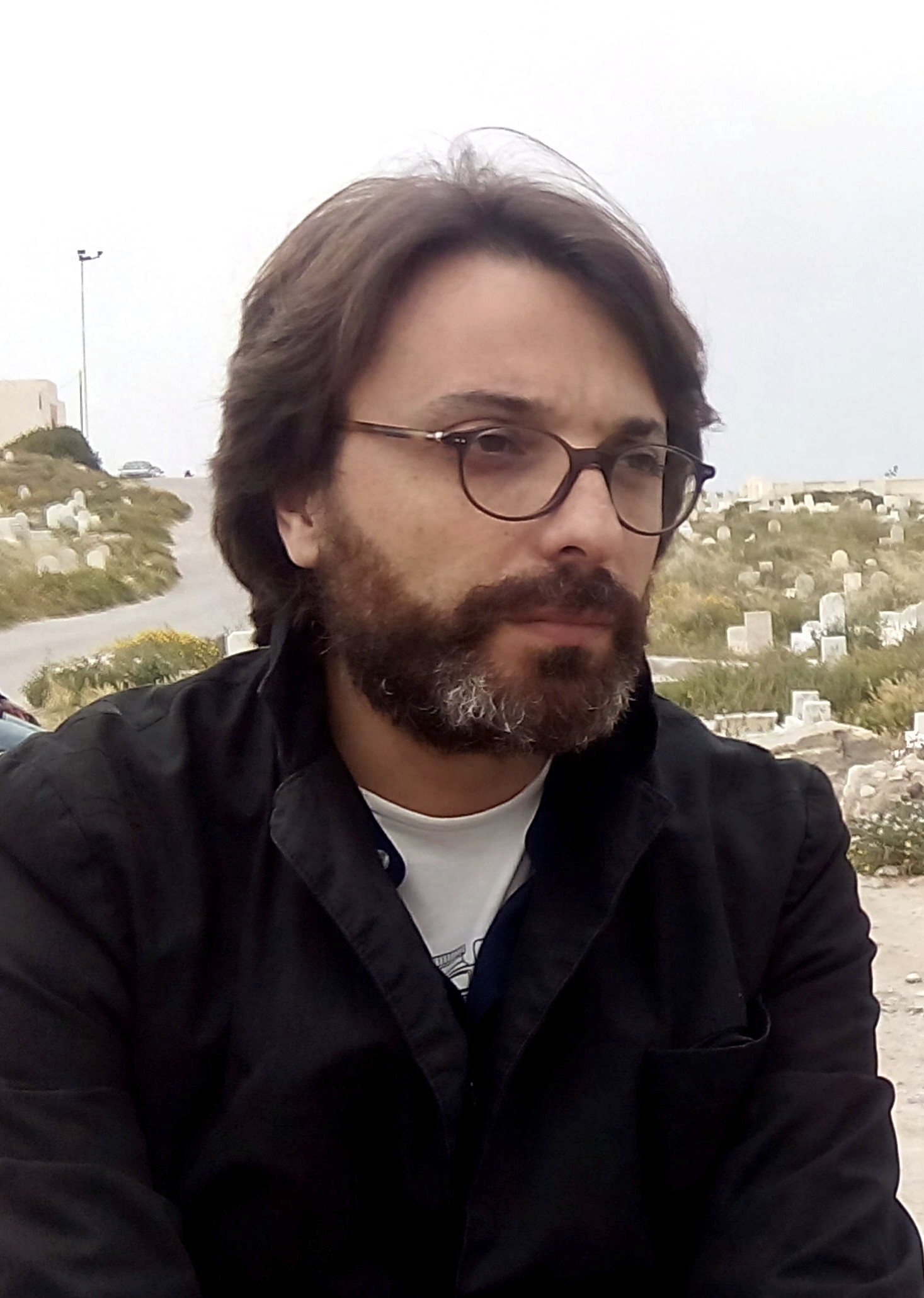 English: Mohamed Ben Attia at mahdia muslim cemetery in 2015 preparing his feature "Hedi". |