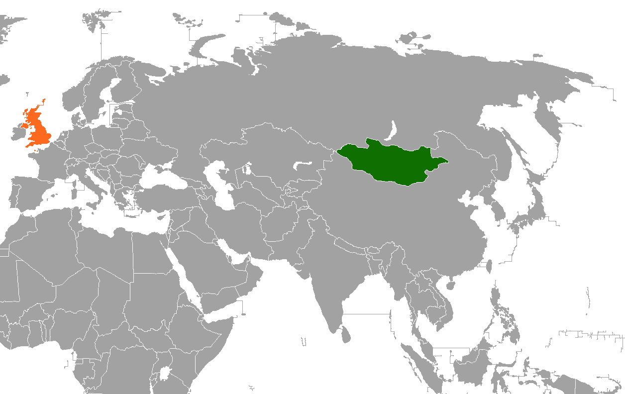 English: Map showing the locations of both Mongolia and the United Kingdom |