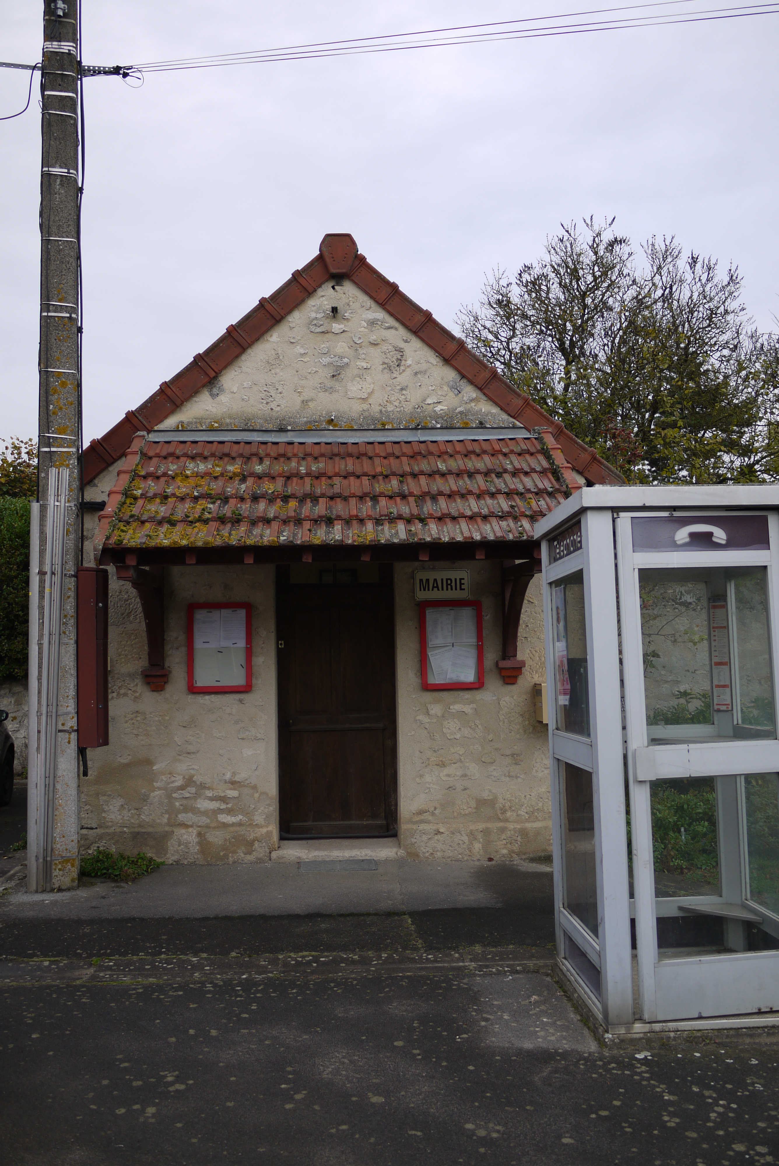 Français : La mairie de Mont-Saint-Martin (Aisne) derrière la cabine téléphonique. |