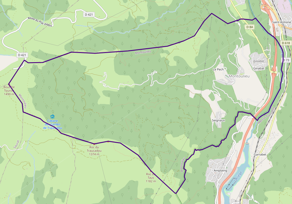 Français : Carte OSM de Montoulieu (Ariège) |