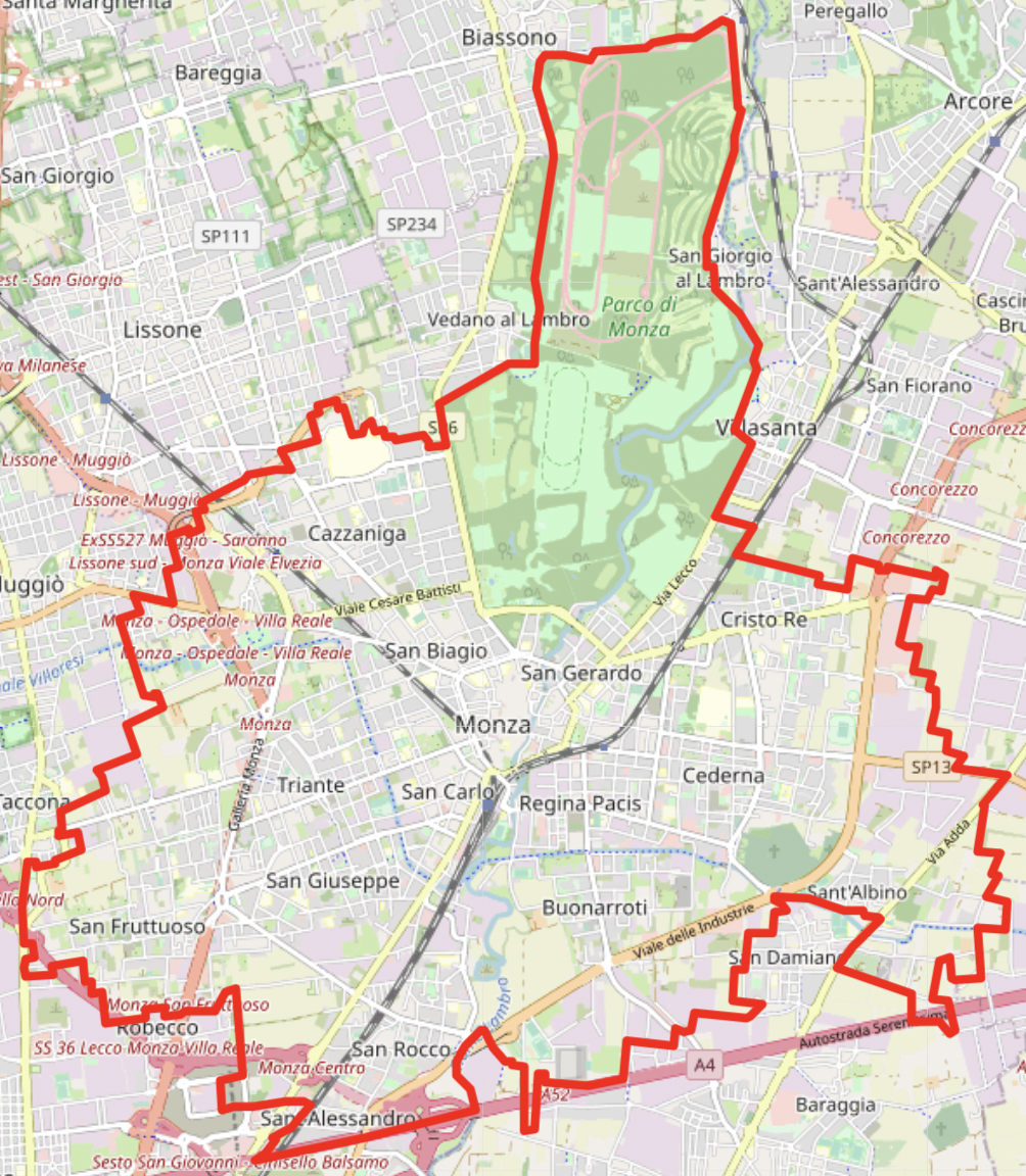 Français : Carte OSM de Monza, Italie
