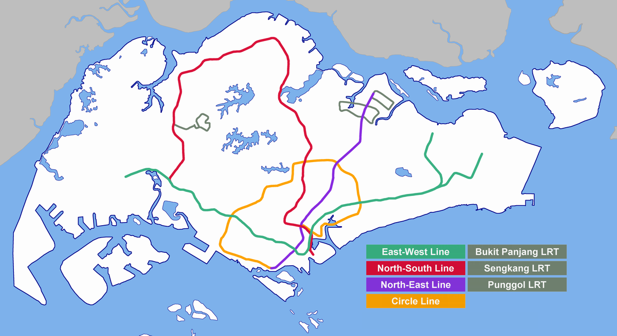 Map of MRT and LRT rails in Singapore. Created by Vsion.